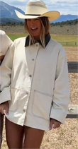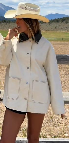 Elevate your casual style with this Cream Contrast Collar Button - Up Jacket. The contrasting collar adds a unique touch, while the button - up design and front pockets offer functionality. Perfect for layering over tees or pairing with shorts. Lightweight fabric ensures fast page load. Shop now for a chic, versatile look!