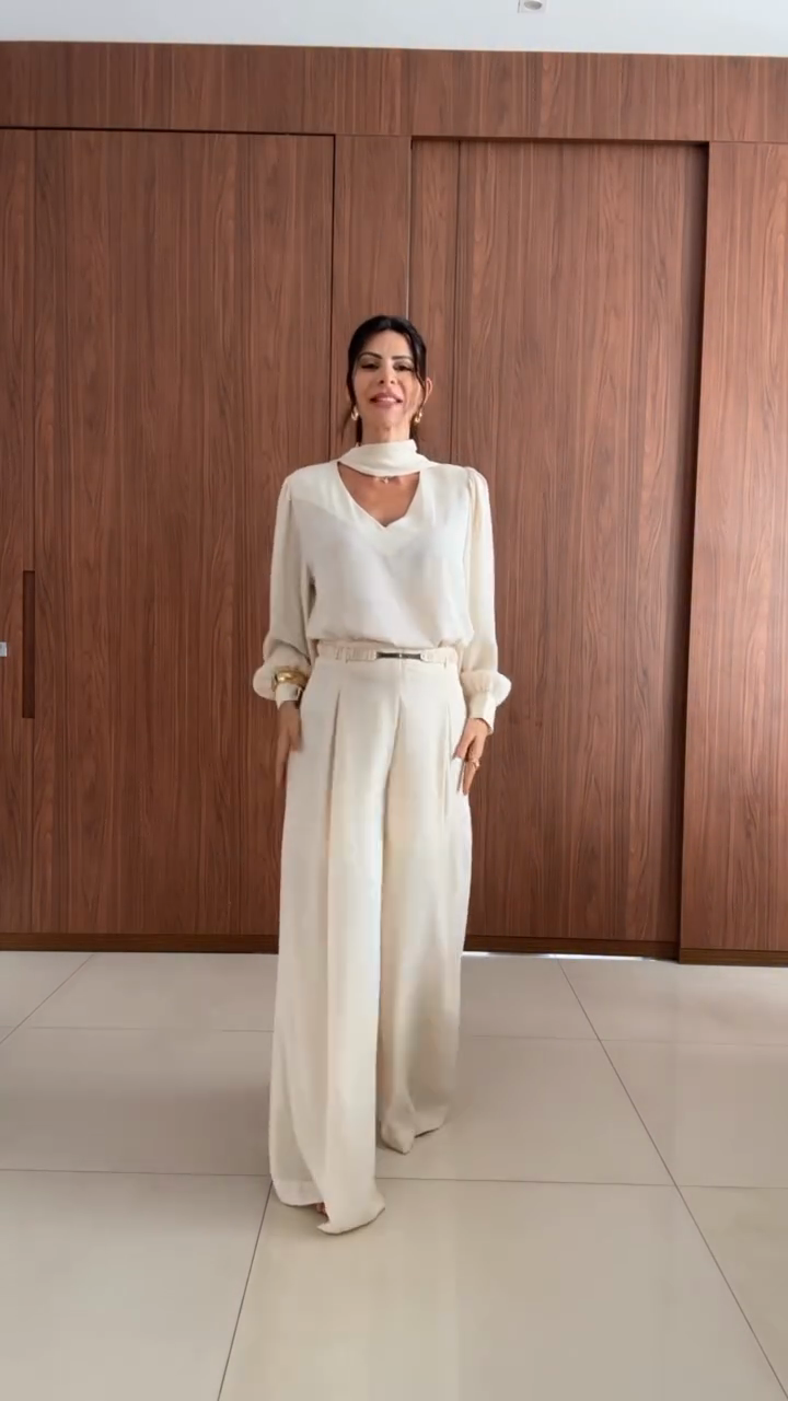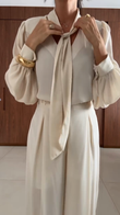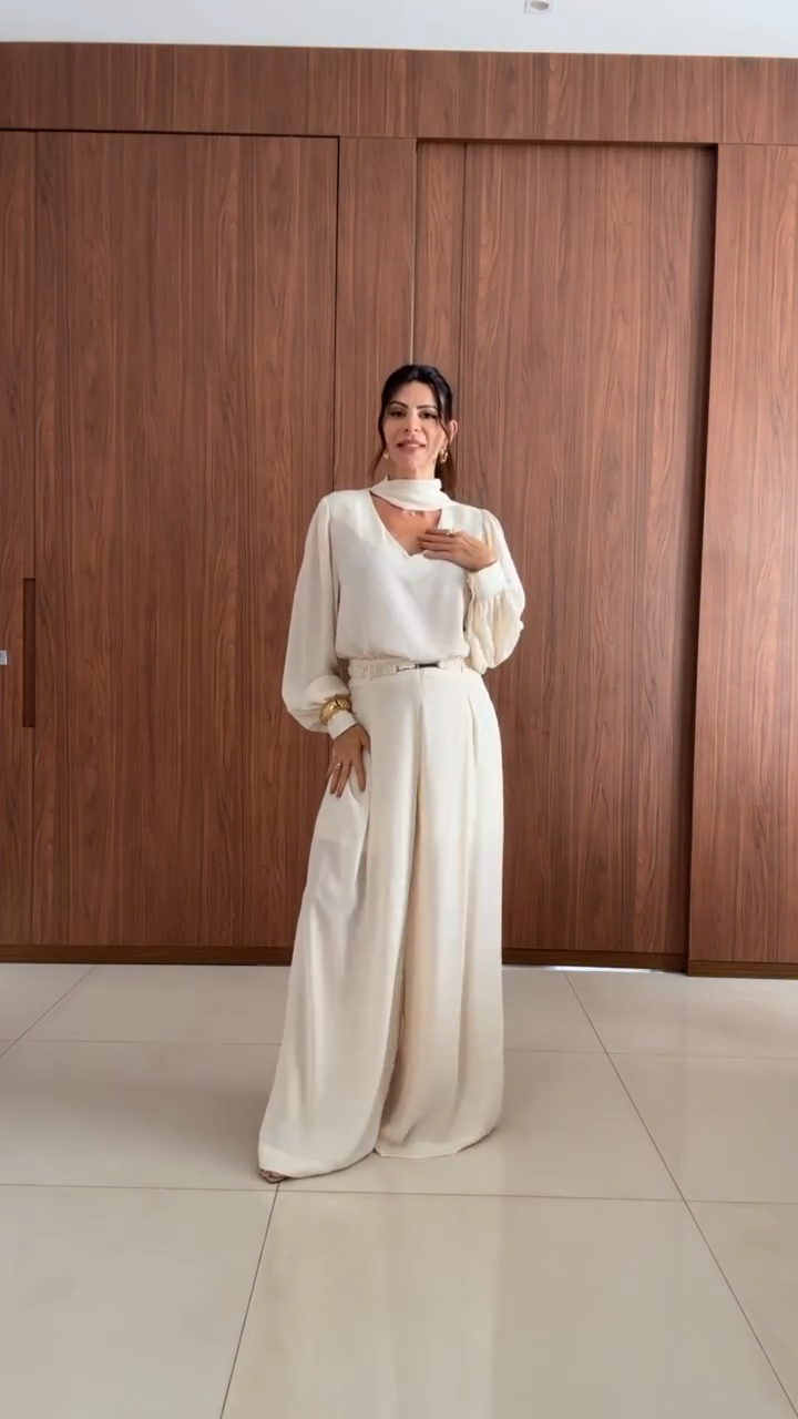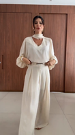 Creamy White Chiffon Top & Wide - Leg Pants Set