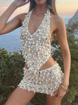 Crochet Shell - Embellished Halter Two - Piece Set