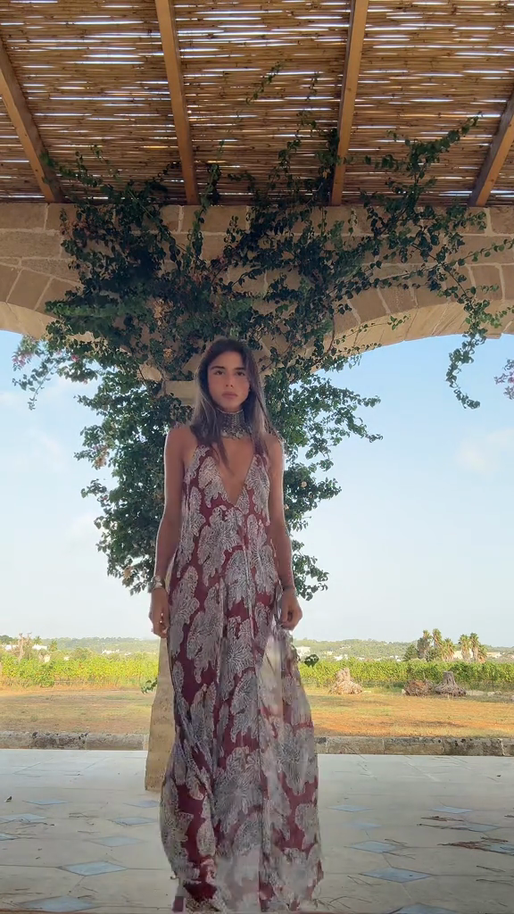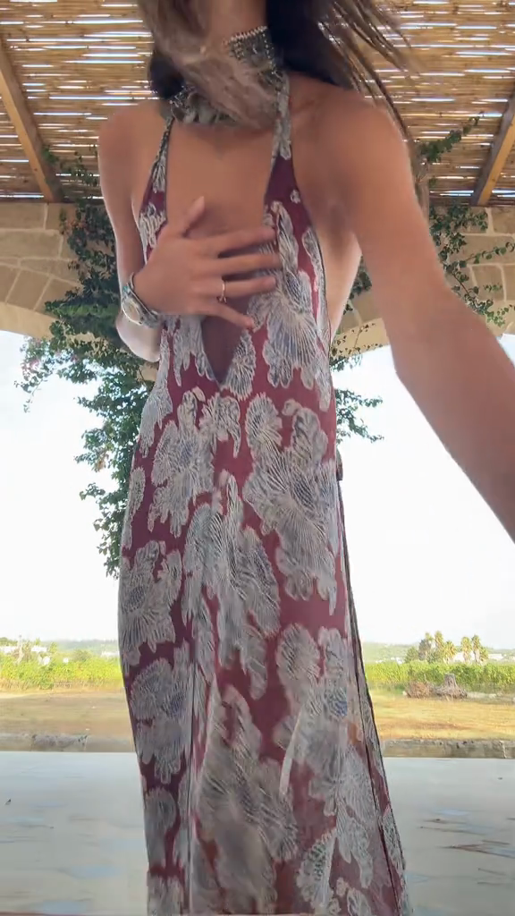 Deep - V Halter Maxi Dress with Floral Print