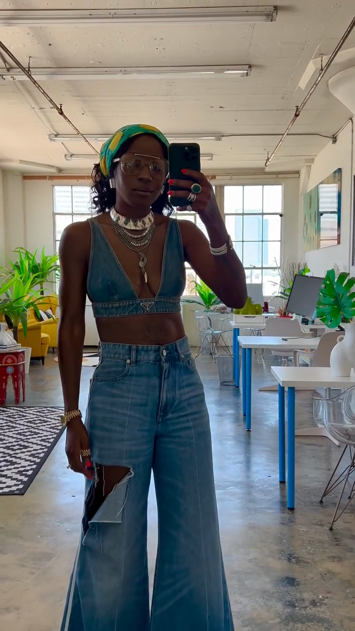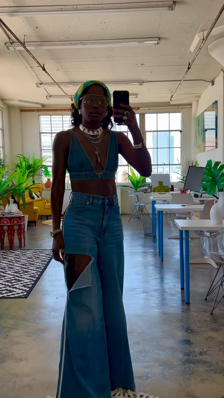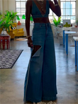 Elevate your style with this denim two - piece set. It includes a deep - V crop top and cutout wide - leg jeans, blending trendy design and casual comfort. Ideal for making a bold fashion statement at parties or street outings. Lightweight fabric ensures fast page load. Shop now for a cohesive, chic denim ensemble!
