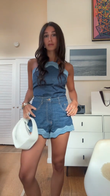 Denim Halter Top and Shorts Set with Ruffle Trim