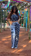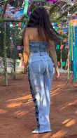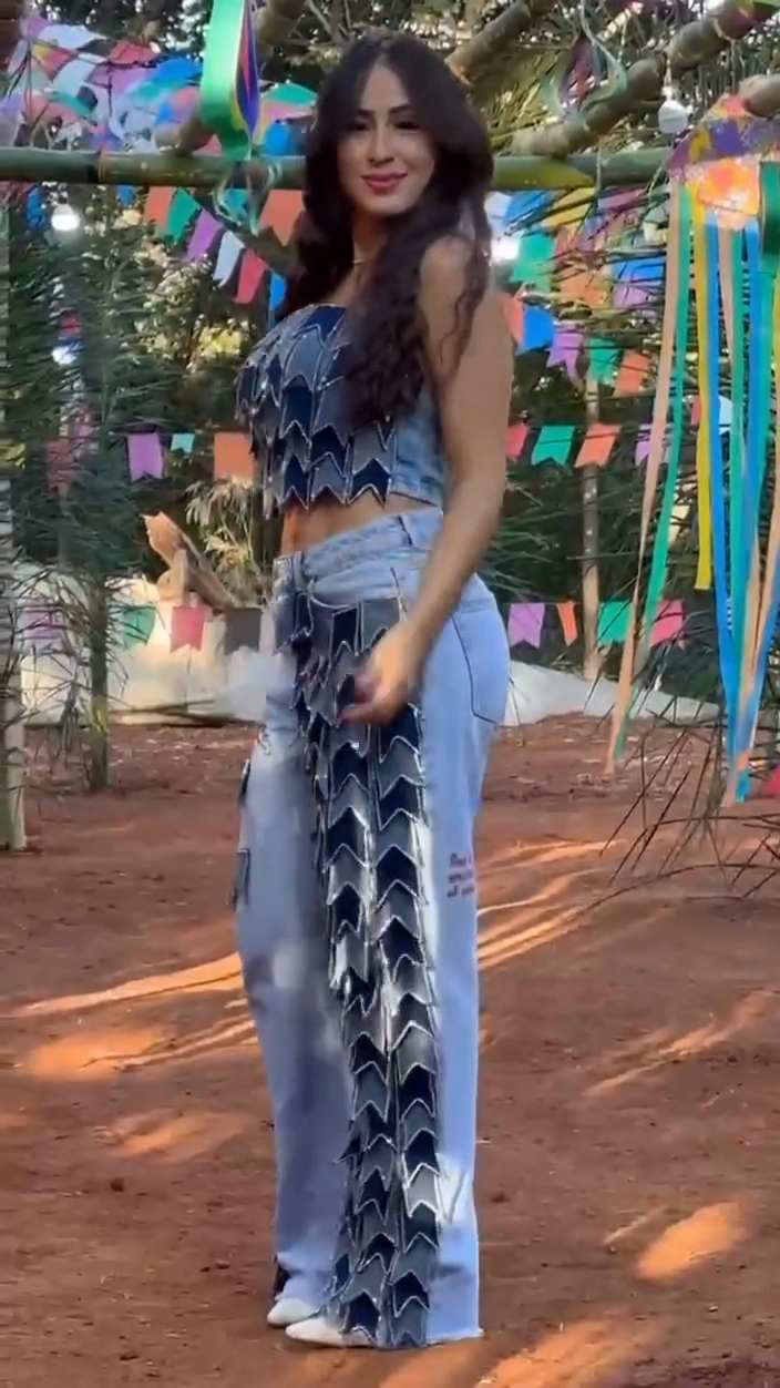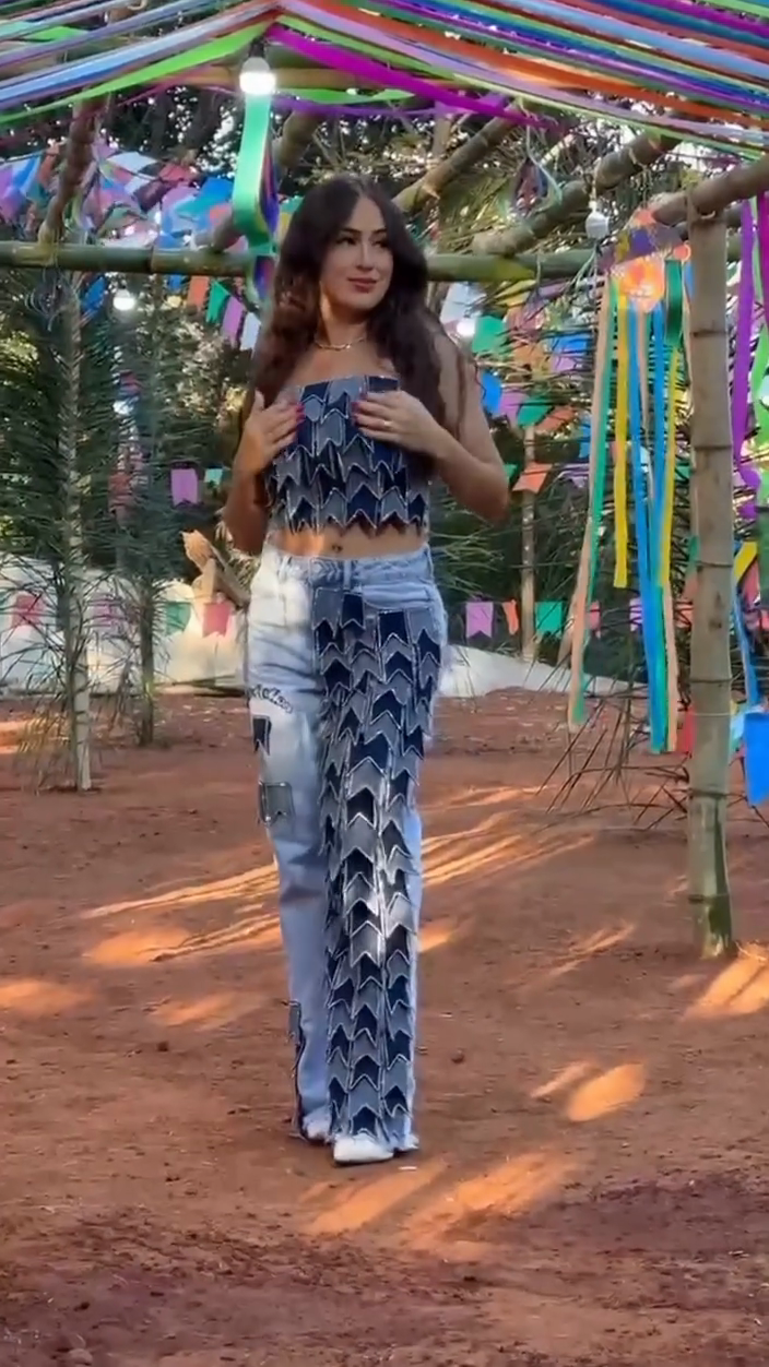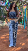 Denim Off-Shoulder Cropped Top and Wide-Leg Pants Set