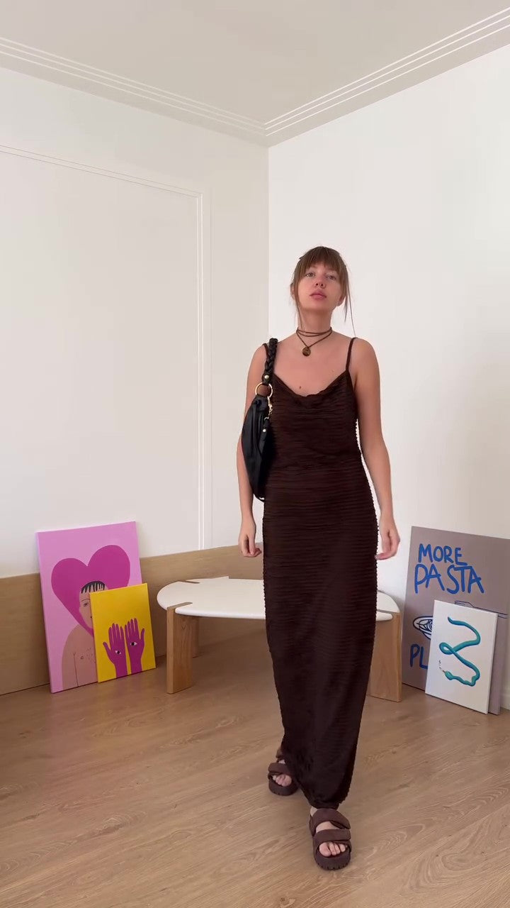 Designer pleated maxi dress