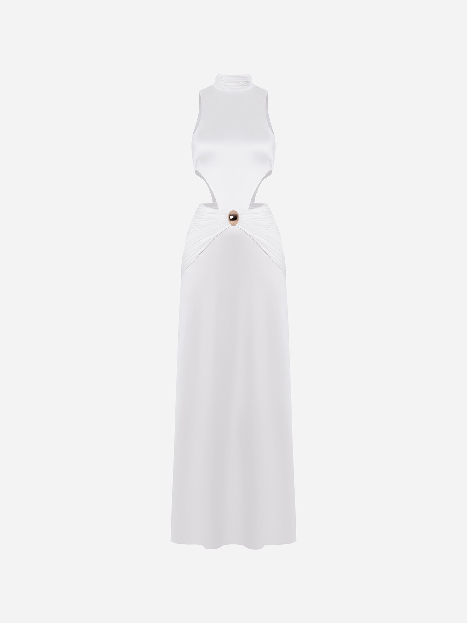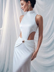 Draping Sleeveless Waist Cuts Maxi Dress