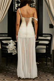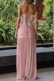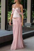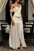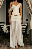 Drop Shoulder Corset Semi Sheer Slit Maxi Skirt Set