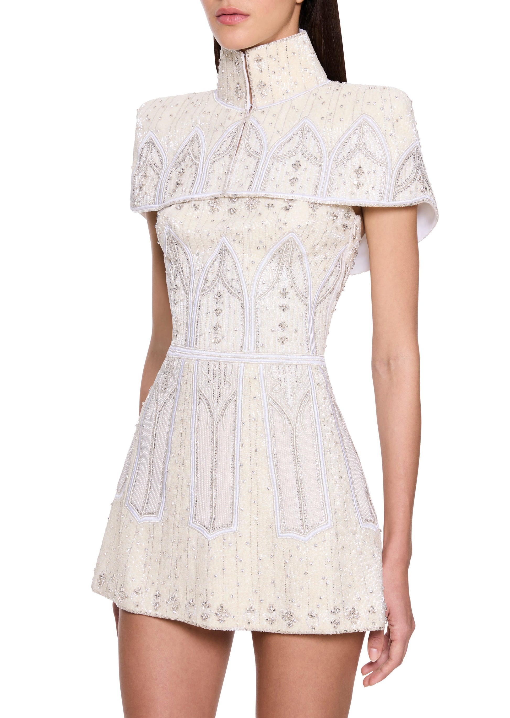 Embellished Mini Dress with Capelet