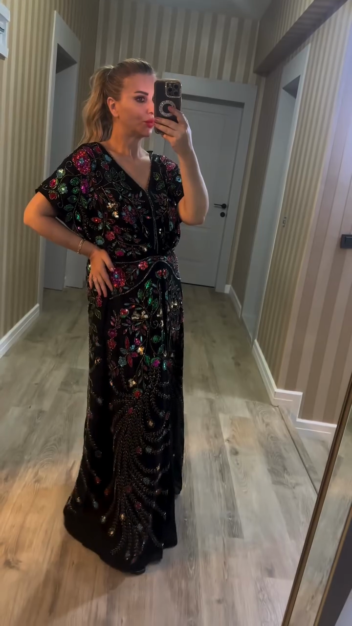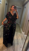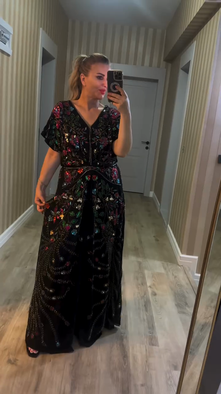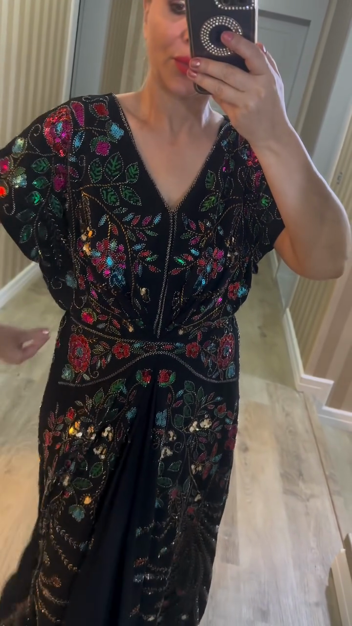 Embroidered and Beaded Black Maxi Dress