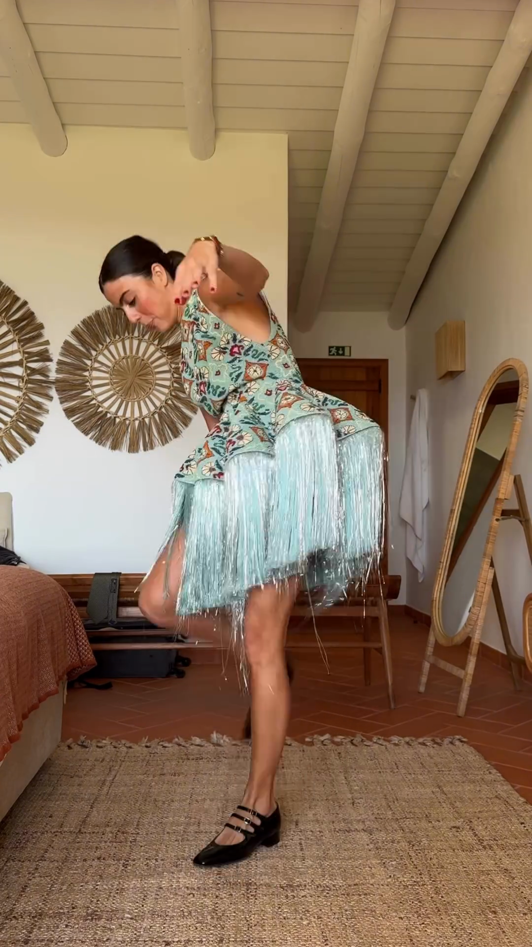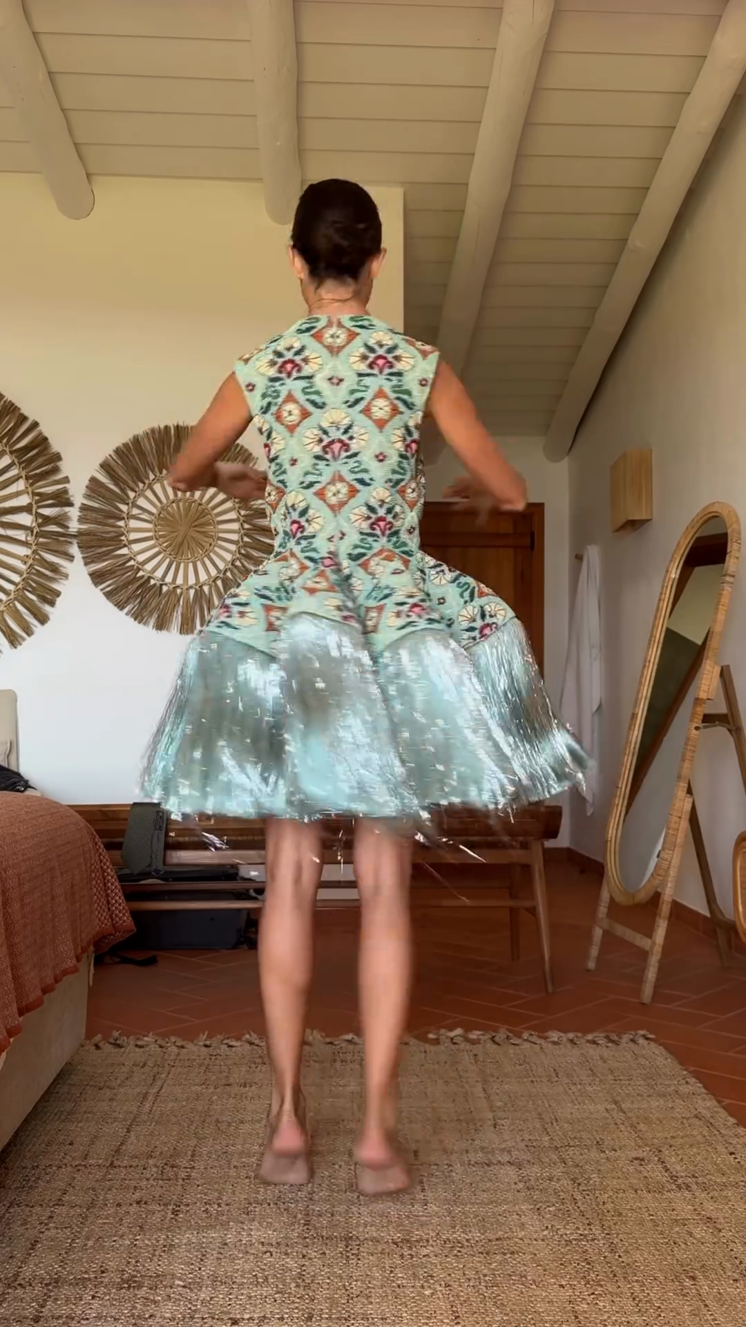Embroidered Dress with Fringe Hem