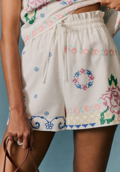 Embroidered Floral Two - Piece Set