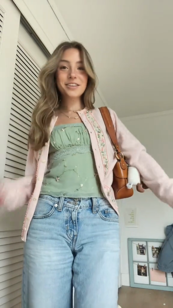 Embroidered Pink Knit Cardigan