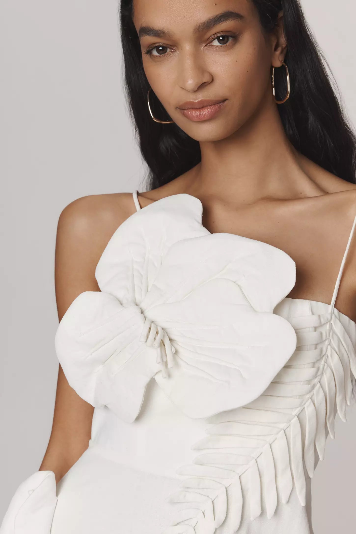 Hand-Appliquéd Florals – 3D floral embellishments bloom across the bodice and skirt