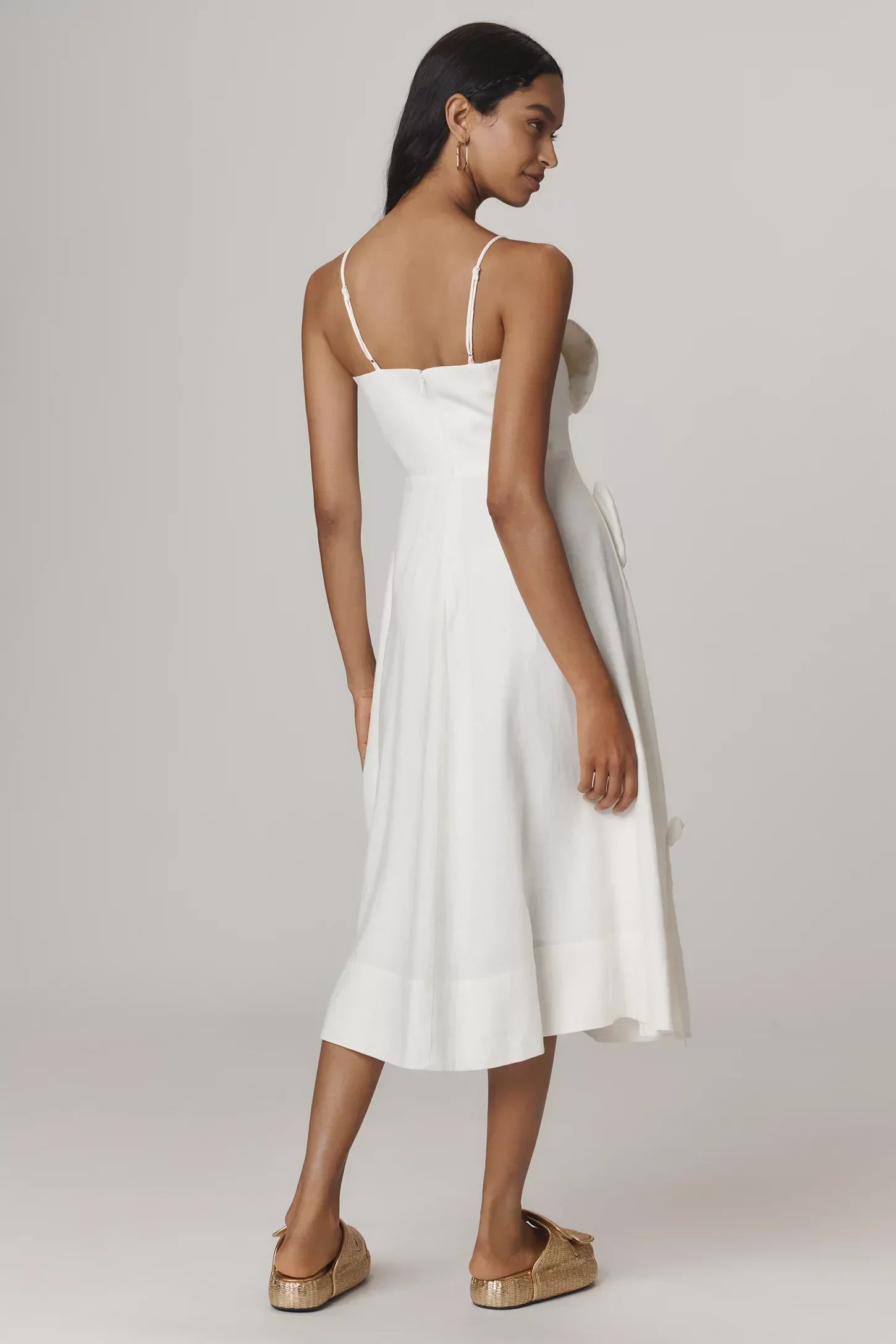 Farm Rio Linen Blend Garden Sleeveless Floral Appliqué Midi Dress