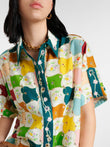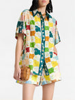 SunflowerHalo®'s stylish graffiti print shirt-shorts set embraces vibrant and effortless style.