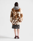 This coat, patterned in brown and white faux fur, exudes luxury and warmth. The classic collar and button-front design add to its timeless appeal, making it a standout piece for colder weather.