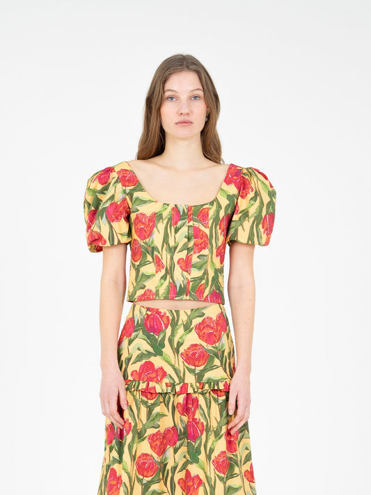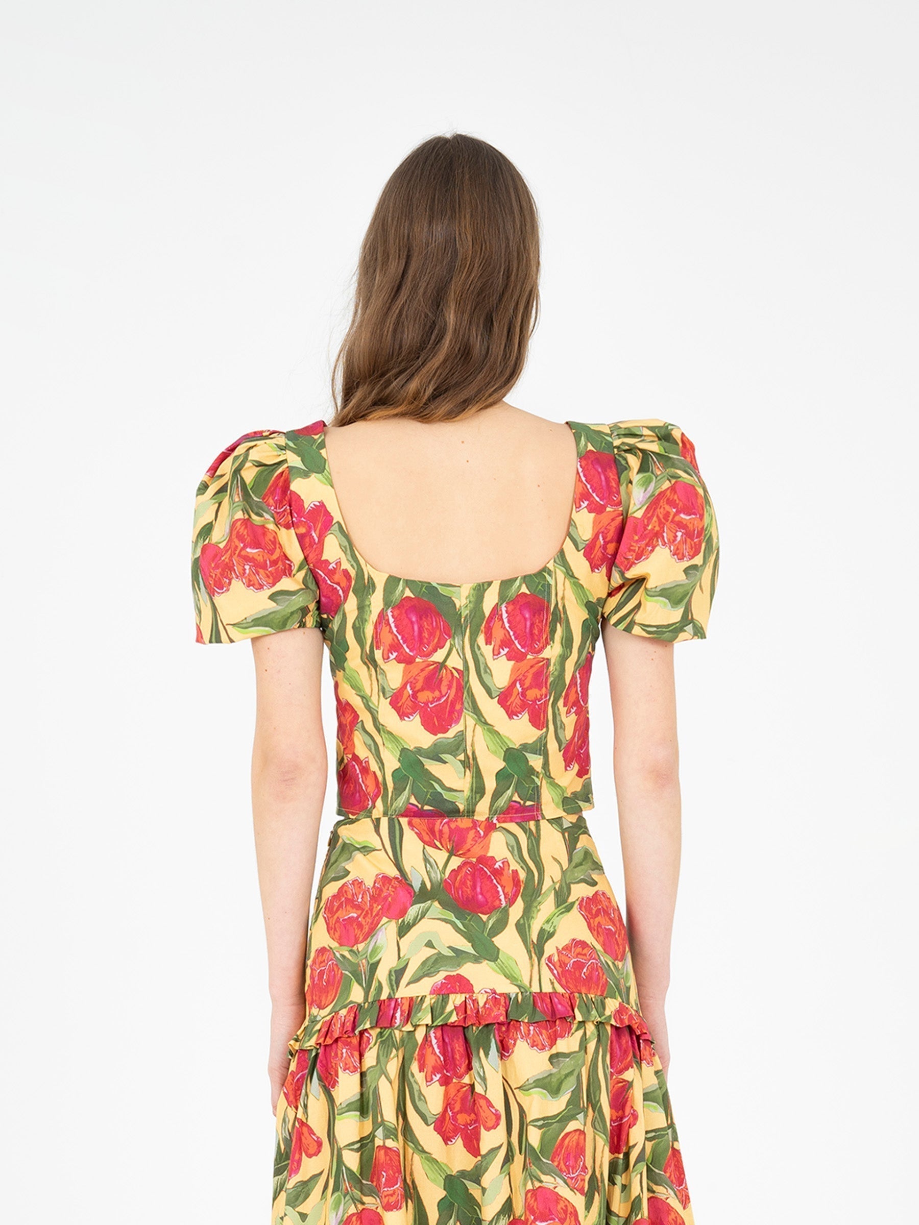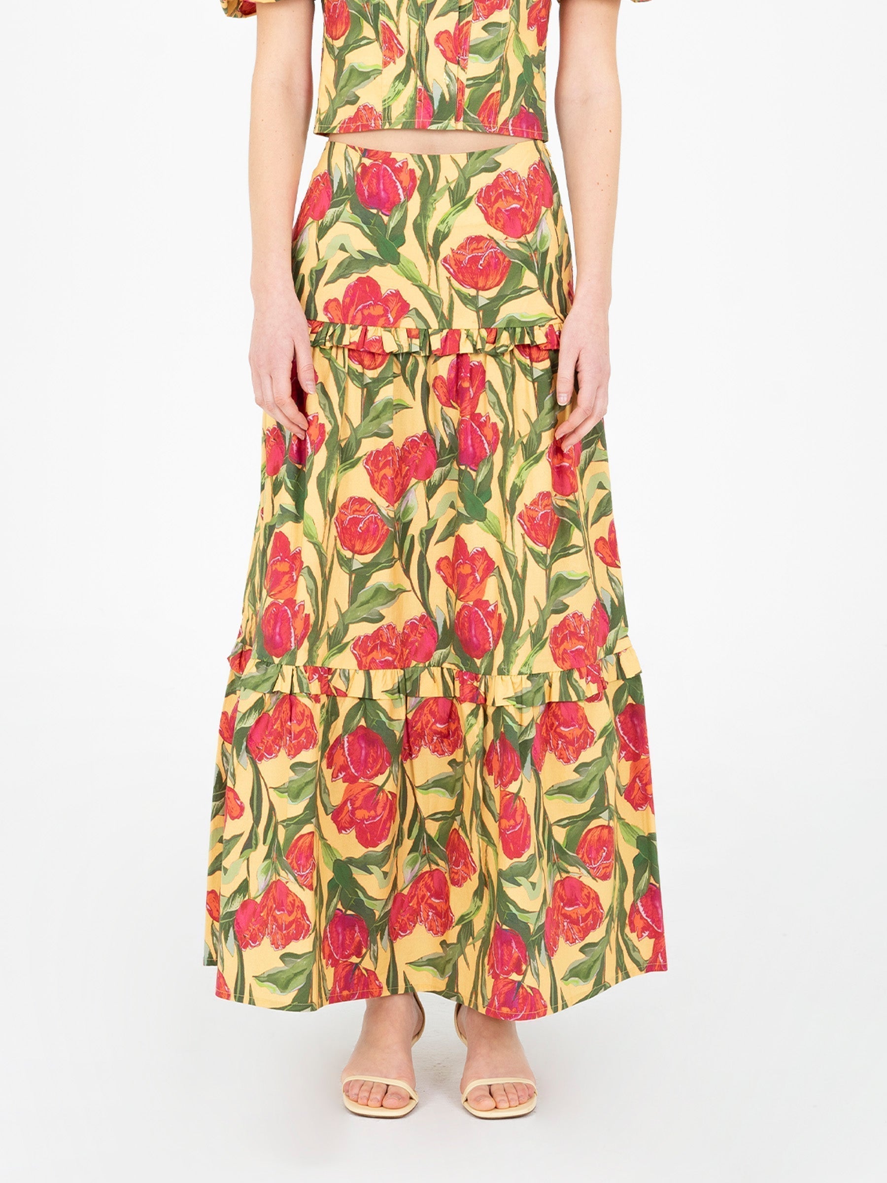 Floral Print Puff Sleeve Top & Maxi Skirt Set