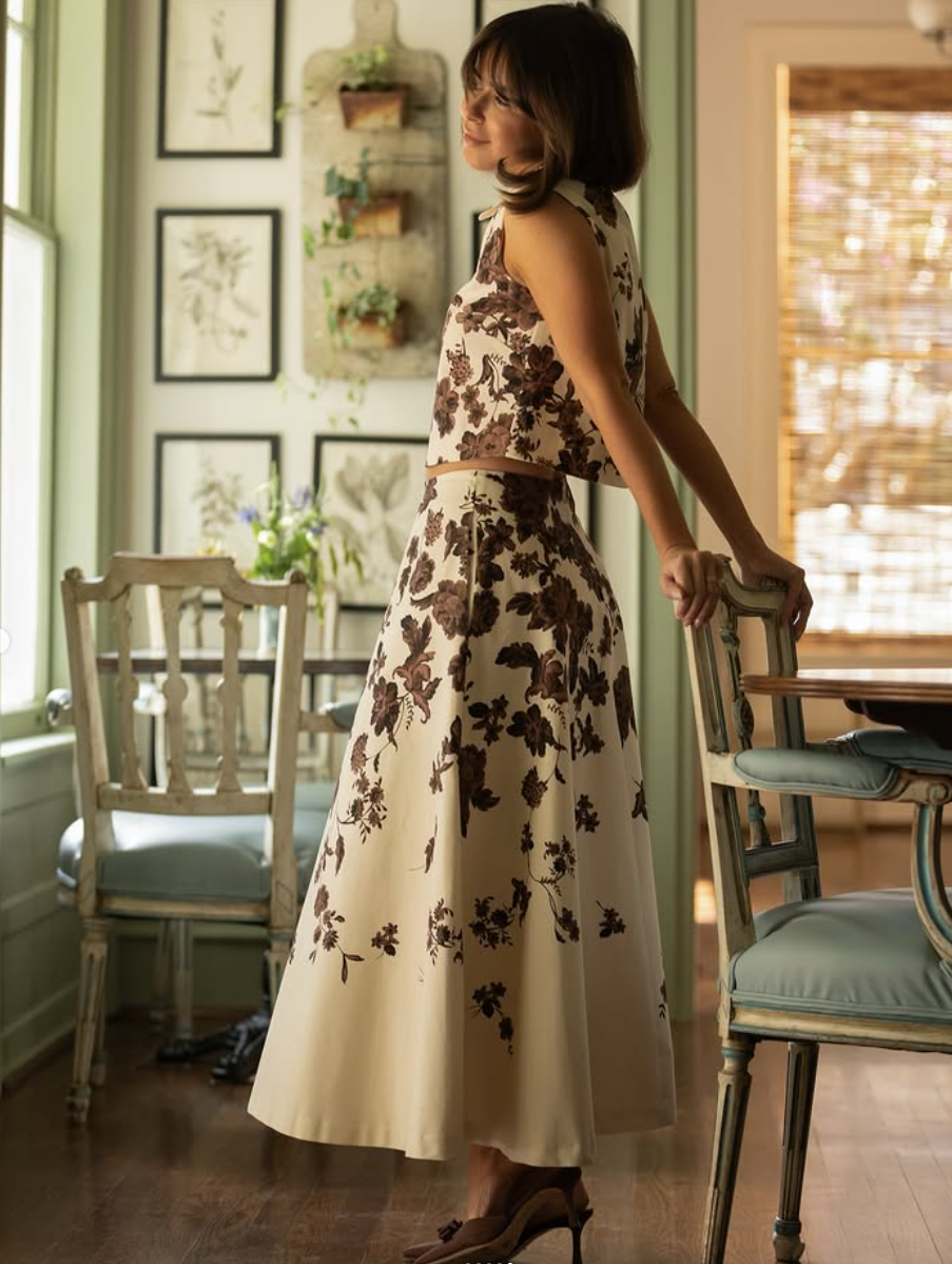 Floral Print Two - piece Set (Crop Top and Midi Skirt)