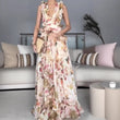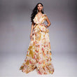 Floral Ruffled Maxi Dress with Plunge Neck