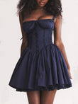French Flair: The deep navy color exudes sophistication, while the corset-style bodice adds a touch of drama.