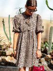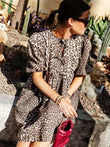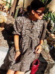 Picture this: You, confidently striding through life's moments, turning heads and making a bold statement with every step. Now, imagine yourself wrapped in the Freya Dress, where empowerment meets effortless style in the most captivating way possible. Its relaxed fit gracefully drapes over your silhouette, ensuring comfort without compromising on style. And oh, those puff sleeves! They're not just sleeves; they're a declaration of your boldness, adding just the right touch of drama to your ensemble. But what truly makes the Freya Dress a standout piece in any wardrobe is its mesmerizing leopard print. And let's not forget about the open round neckline with tie bands, adding a playful yet sophisticated touch to your look. Elevate your wardrobe with the Freya Dress and unleash your inner wildness with elegance.