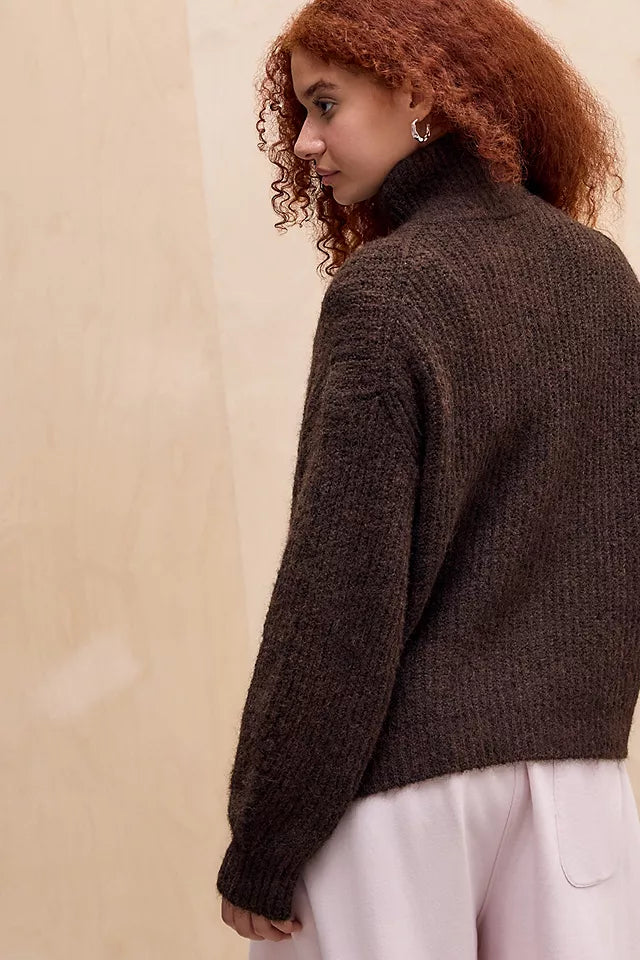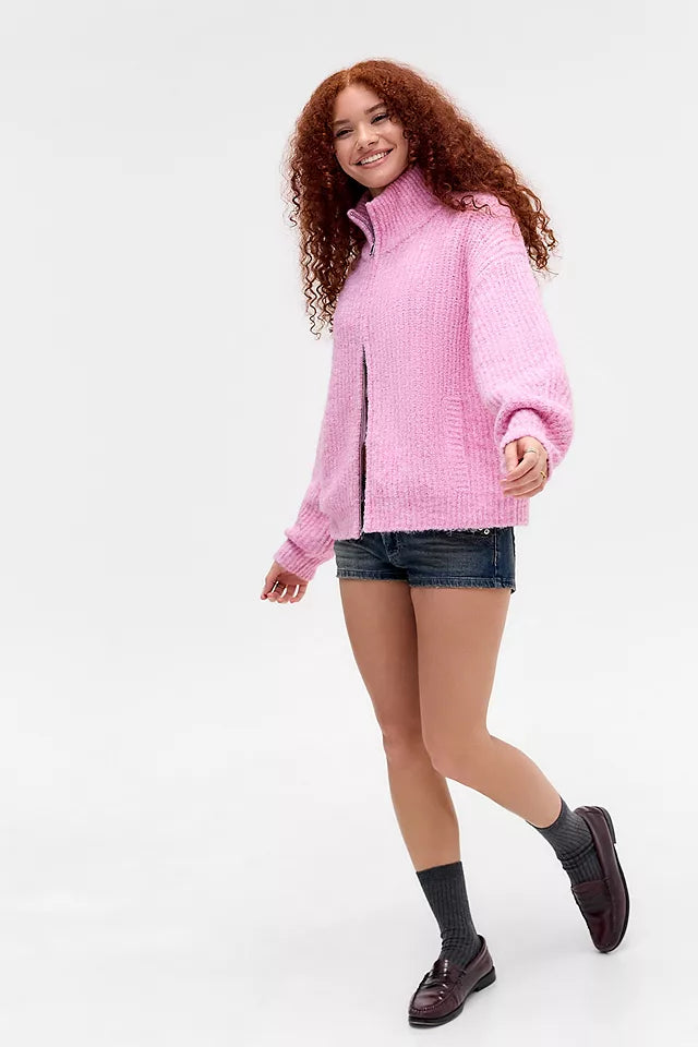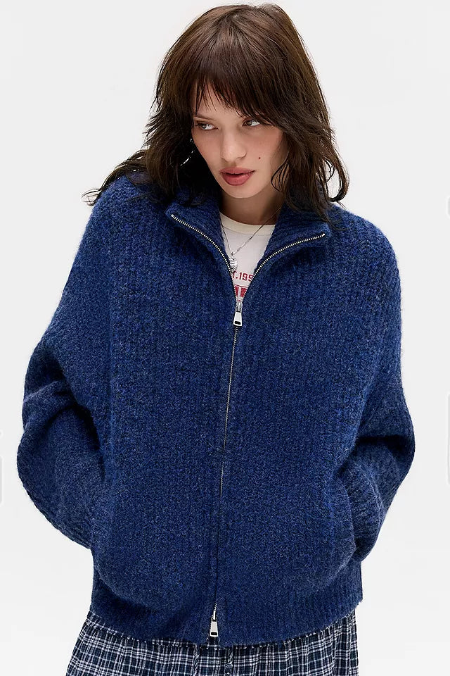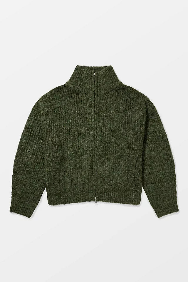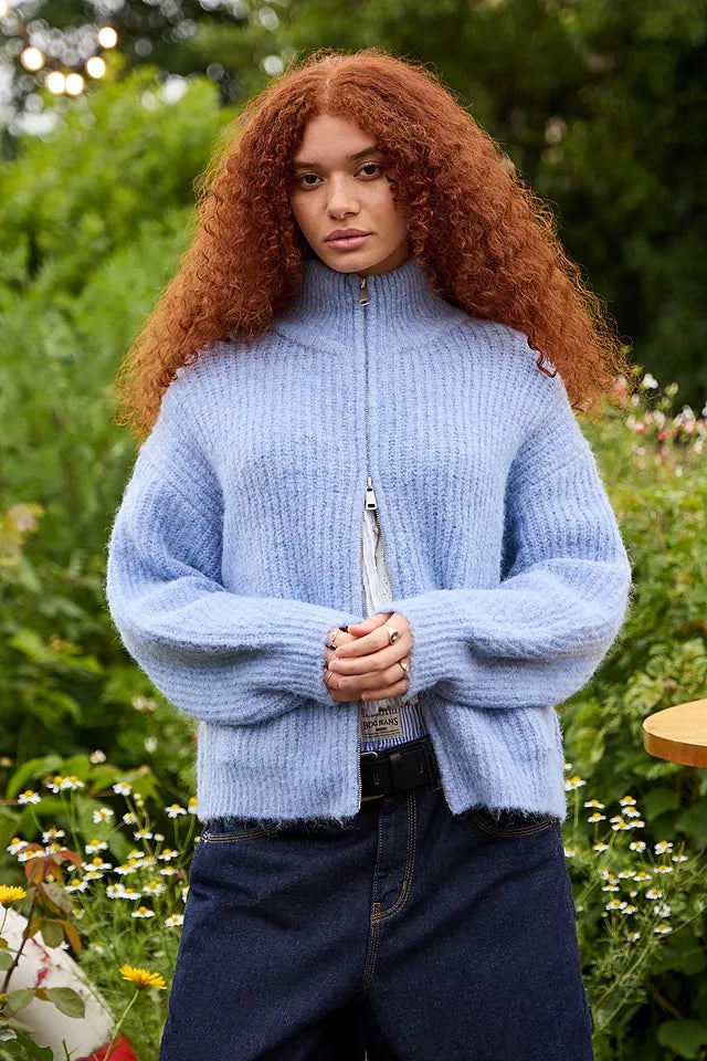 Funnel Neck Zip-Through Cardigan