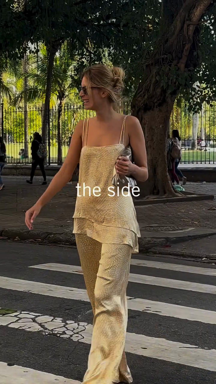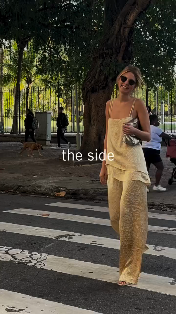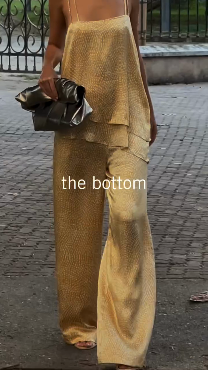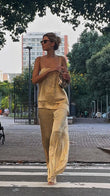 Gold Spaghetti Strap Top and Wide - leg Pants Set