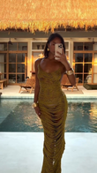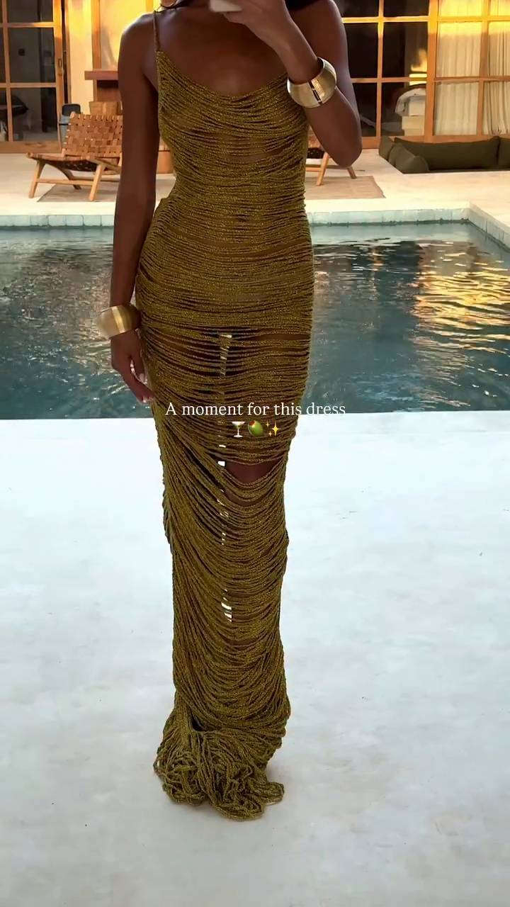 Gold Toned Fringed Maxi Dress