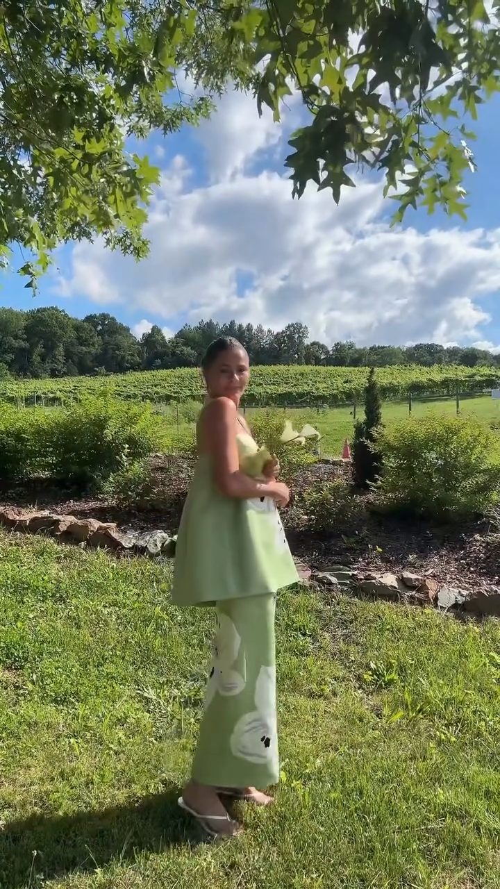 Green Floral - Print Cami Top & Maxi Skirt Set