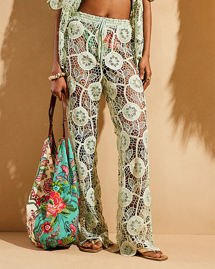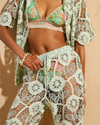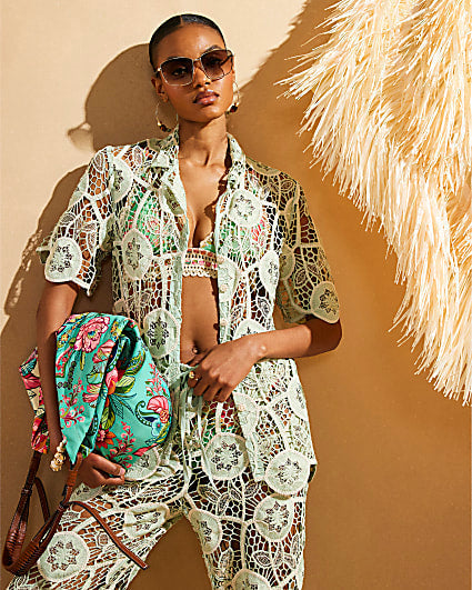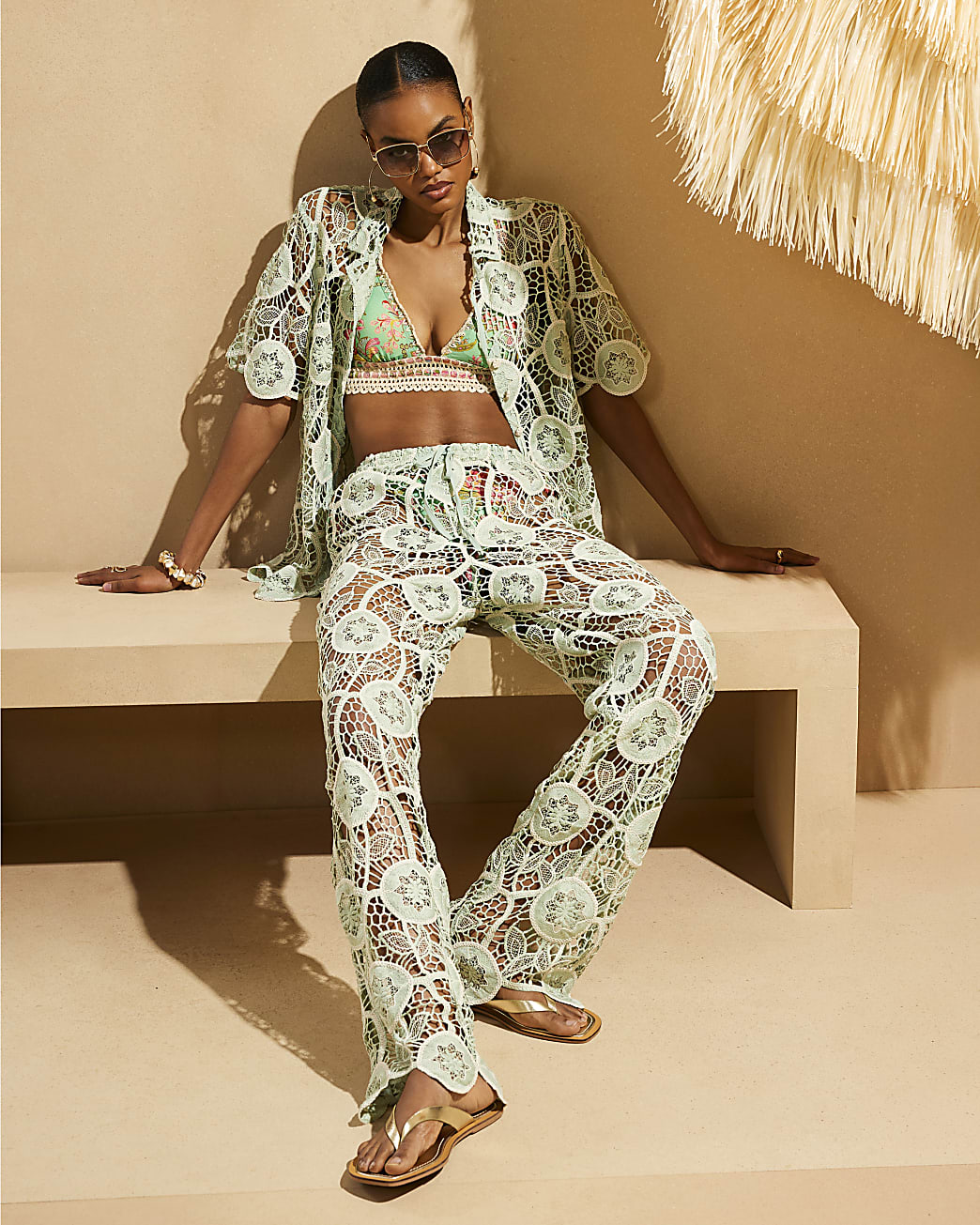 Green Lace Long-Sleeved Shirt and Trousers Set