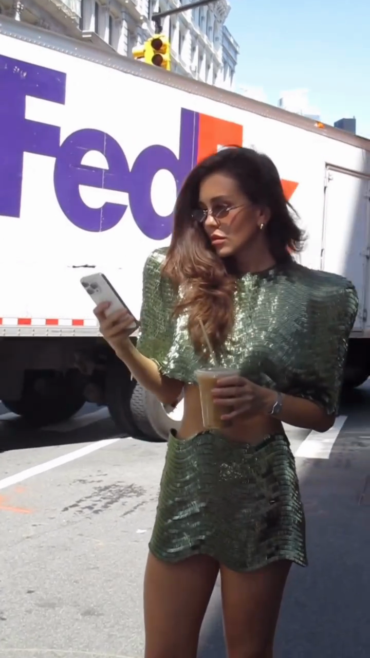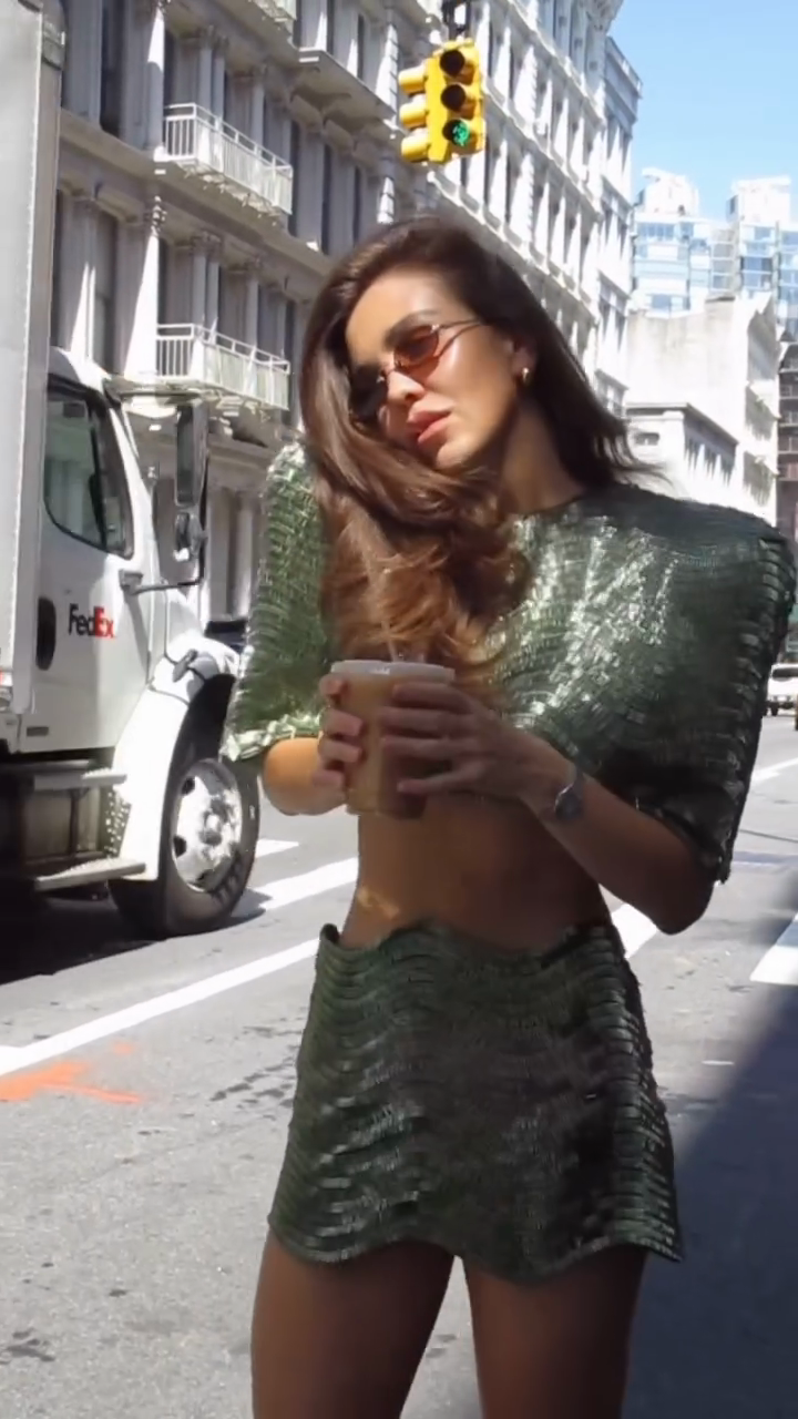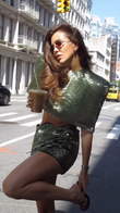 Green Metallic Crop Top & Mini Skirt Set