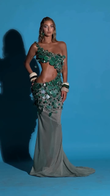 Green One - Shoulder Sequin and Disc Embellished Gown