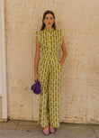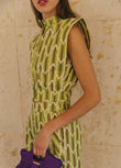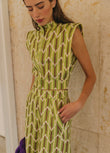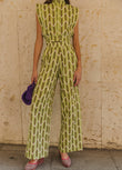 Green Striped Sleeveless Top and Wide - leg Pants Set