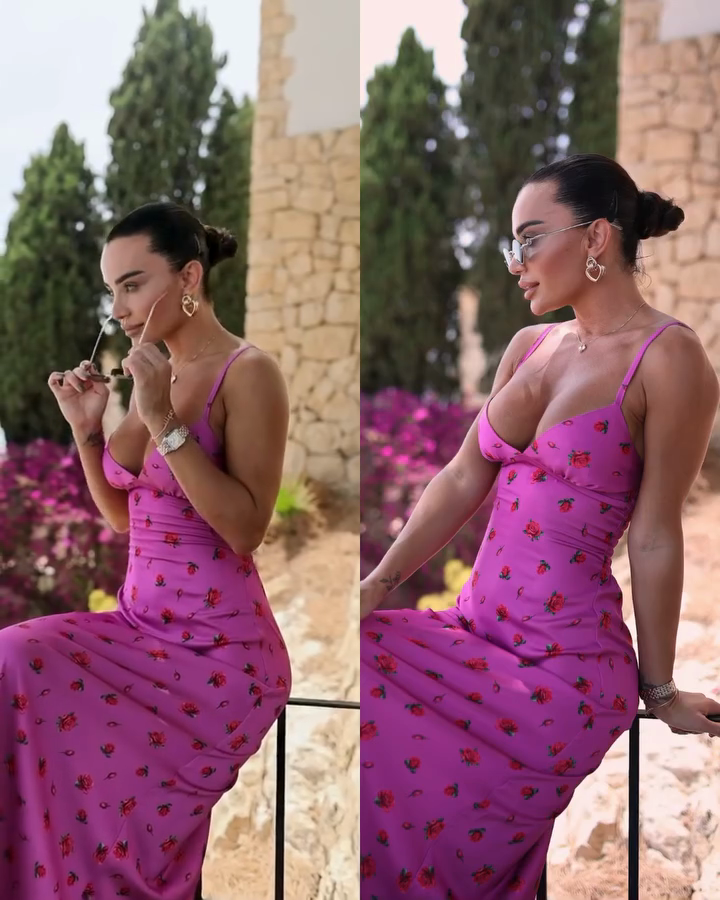 Hot Pink Floral Print Spaghetti - strap Maxi Dress