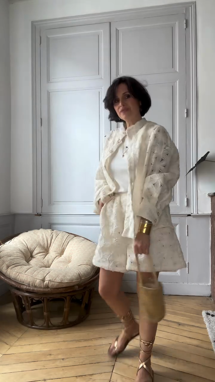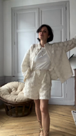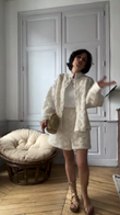 Ivory Embroidered Button - Up Jacket and Shorts Set
