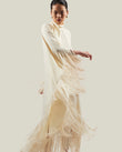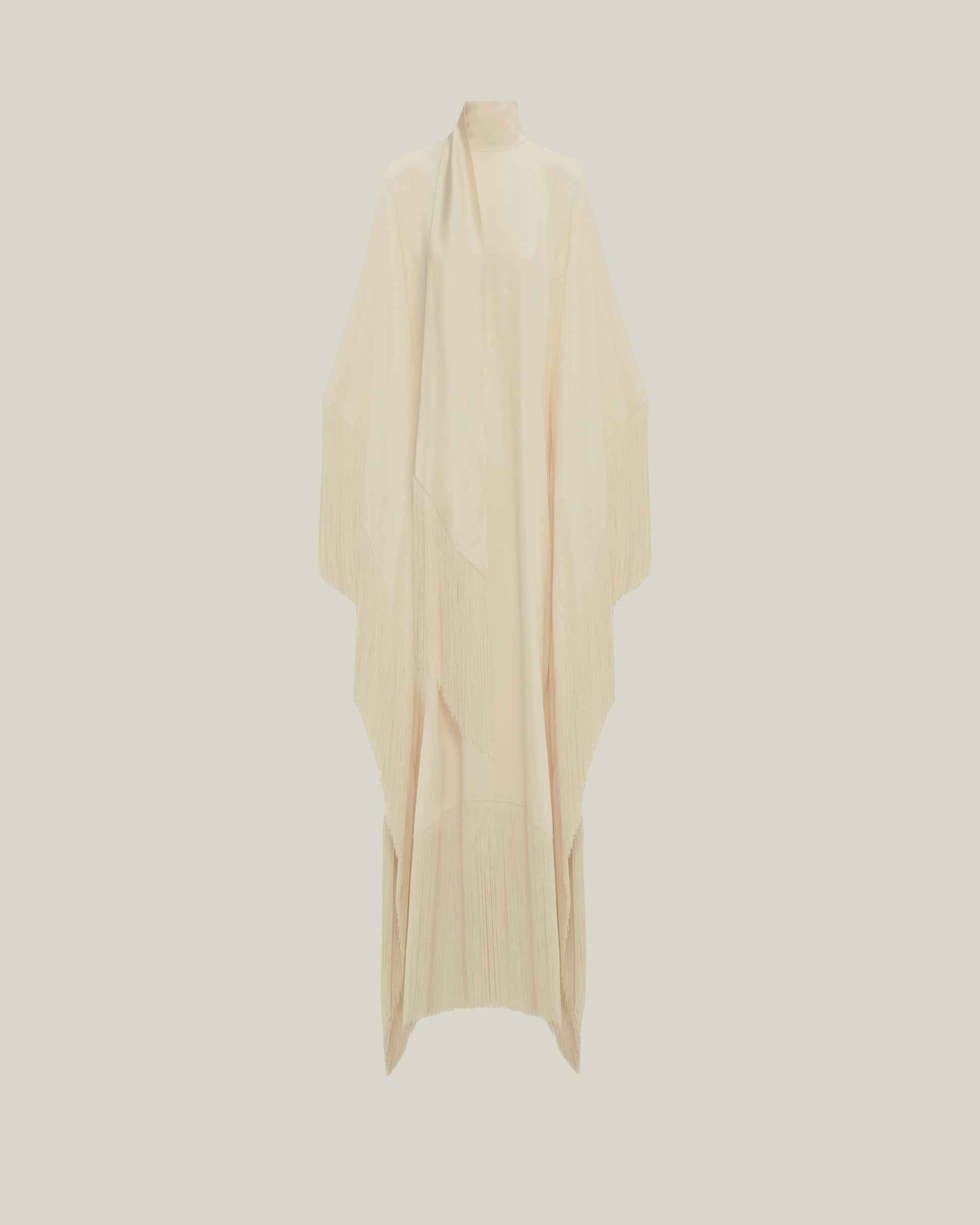 Inspired by the one and only Princess Diana, this design is crafted from smooth viscose-blend crepe cady for a relaxed fit and accented with soft tonal fringe and a high scarf-style neckline.