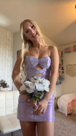 Lavender Sequined Off-The-Shoulder Cut-Out Mini Dress