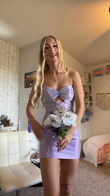 This lavender mini dress features an off-the-shoulder design embellished with shimmering sequins for a luxurious, eye-catching look. The navel-baring cutout adds a touch of allure, while the bow accentuates the bust for a more feminine look.