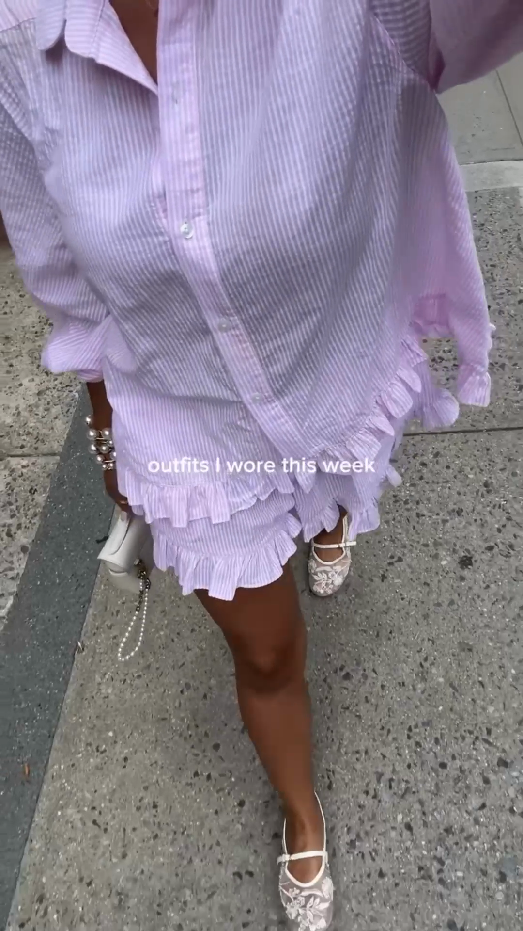 Lavender Striped Ruffle Shirt & Shorts Set