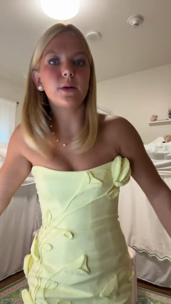 Lemon Yellow Strapless Floral Applique Mini Dress
