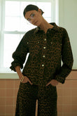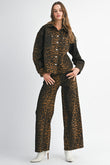 Leopard Print Denim Jacket and Wide - Leg Pants Set