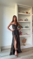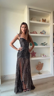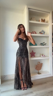 Leopard Print off-the-shoulder High Slit Maxi Dress