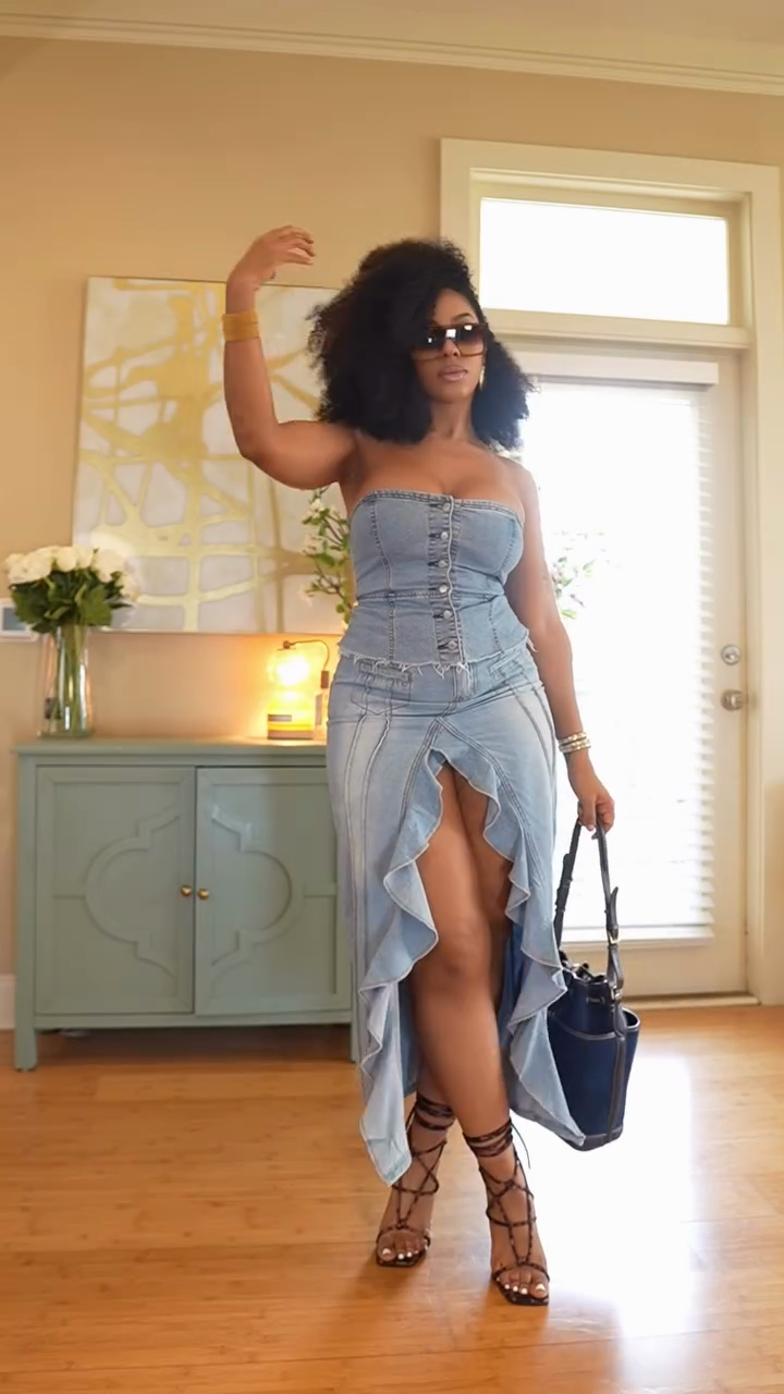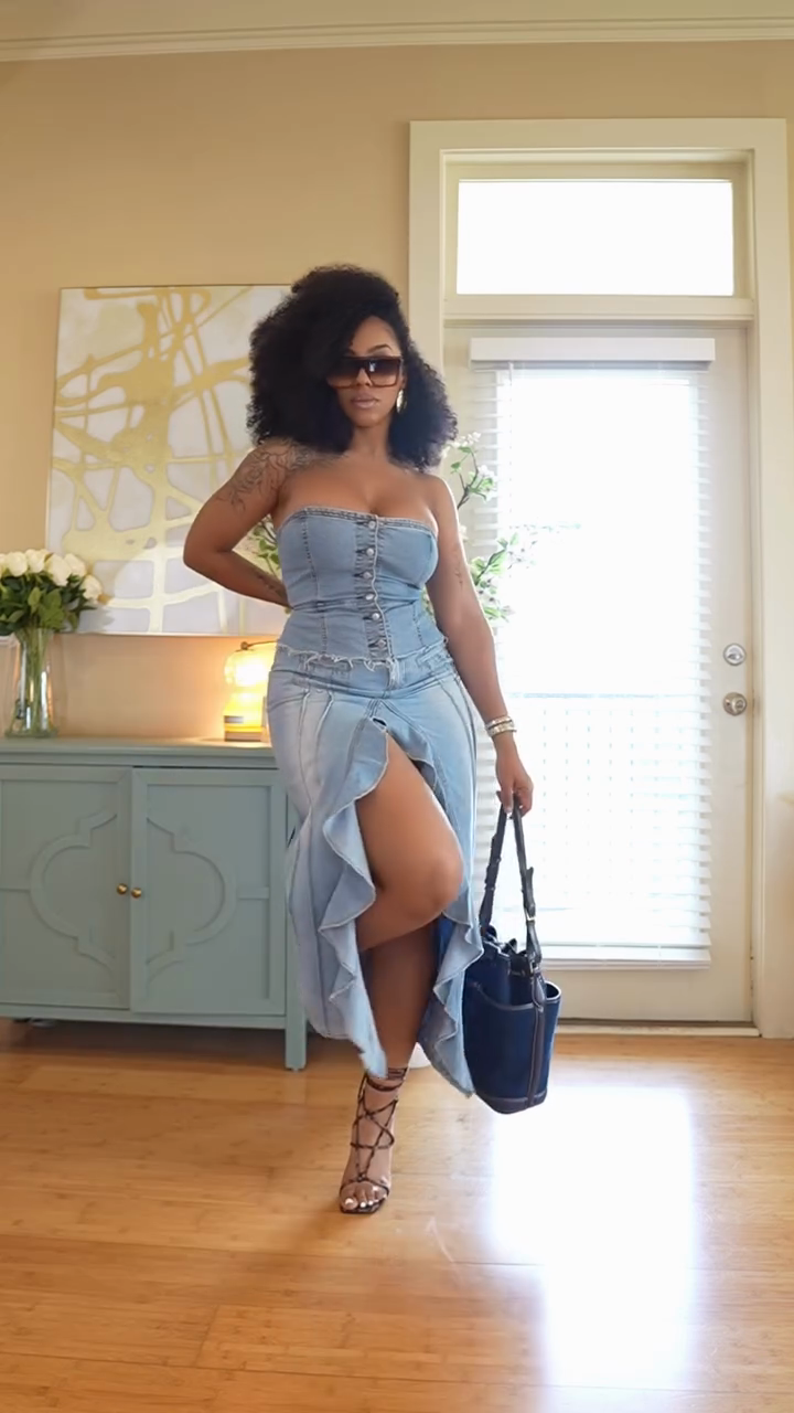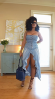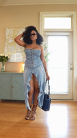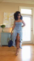Light Blue Denim Strapless Corset and Maxi Skirt Set