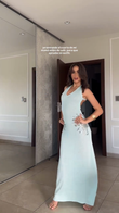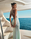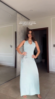 Light Blue Halter V - neck Sequin - embellished Maxi Dress