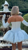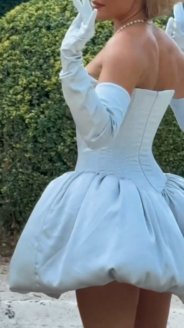 Light Blue Strapless Mini Dress with Puffed Skirt