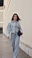 Light Wash Denim Jacket and Wide Leg Jeans Set