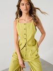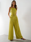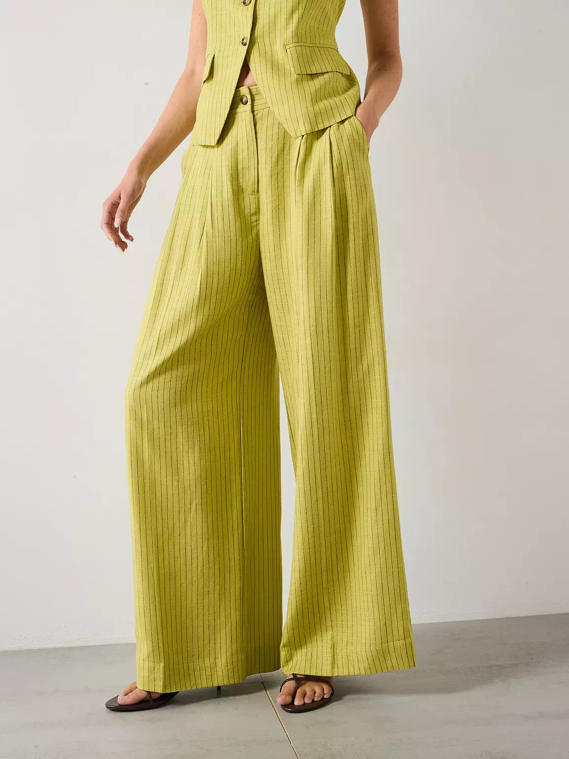 Lime Green Pinstriped Sleeveless Vest and Wide - leg Pants Set