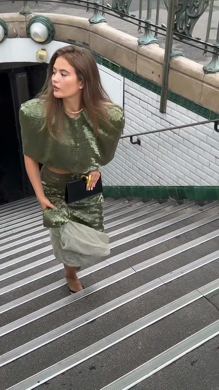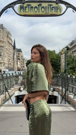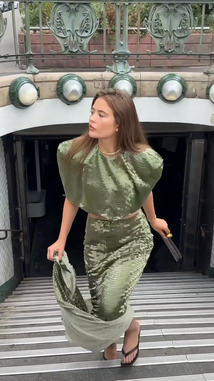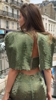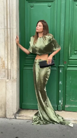 Metallic Green Crop Top and Maxi Skirt Set