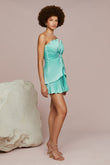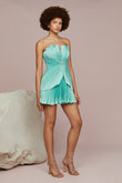 Mint Green Strapless Pleated Mini Dress with Cutout Detail