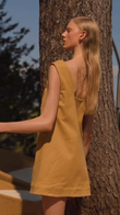 Mustard Yellow Large Circle Hollow Sleeveless Shift Dress