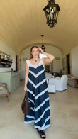 Navy Blue and White Striped Lace - Trimmed Maxi Dress